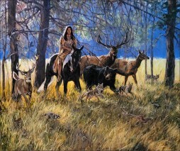 “Native Mother Nature” is a grand centerpiece of creatures engaging in a peaceful afternoon of spirits coming together, celebrating the simple joys of living as intended; and the painting “The Big Red Horse” honors the year of the fire horse, a year of building for a future of powerful beginnings.