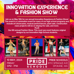 Please join Innovation High School's Innovation Experience Event. Our students will be hosting a plant sale, musical performances, student vendors, art gallery, and our 6th Annual Fashion Show (beginning at 6:00 pm).