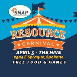 Join SNAP for our SPRING BREAK RESOURCE CARNIVAL Friday April 5 2024 11 am – 3 pm at the Hive located at 2904 E. Sprague Avenue in Spokane.