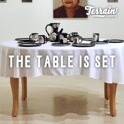 Join us at Terrain Gallery for ‘The Table Is Set’, a unique art show by Liv Hebert Watkins, honoring the everyday people, objects, and rituals in life. The central aspect of this concept is the dinner table– a space where individuals gather and interact as a whole; despite differences in background, culture, language or family ties. There is beauty in the simple act of gathering, sharing a warm drink, eating food, and sitting together. Combining iconographic halos with commonplace faces and objects, Liv explores the beauty and divinity of the ordinary.